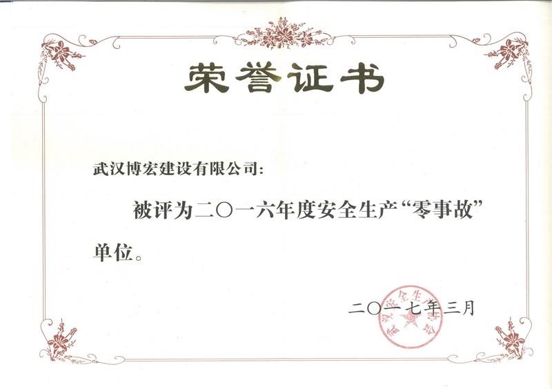 2016年度安全生產“零事故”