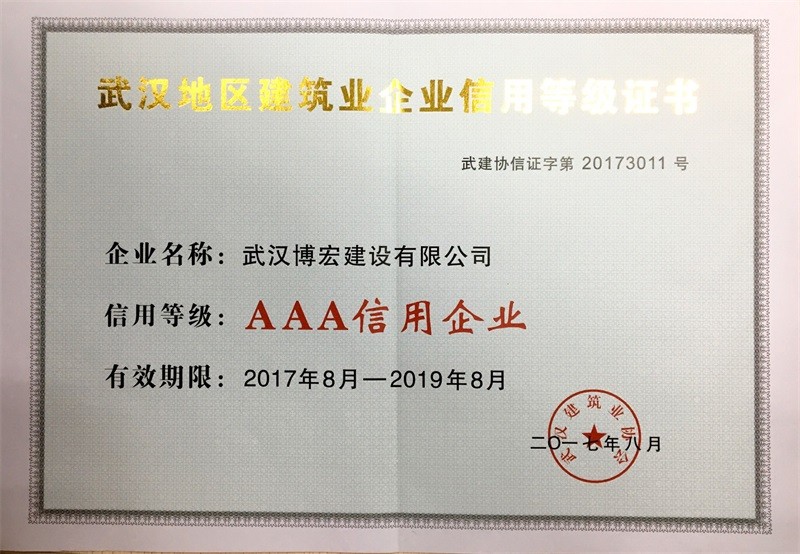 武漢地區建筑業企業信用等級證書2017-2019年度