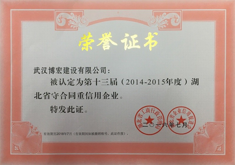 2014-2015年度湖北省守合同重信用企業