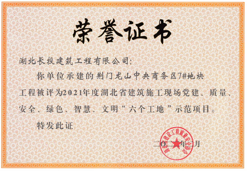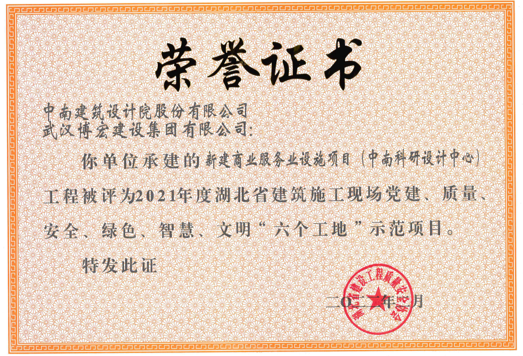 近日,2021年度湖北省建筑施工現(xiàn)場(chǎng)黨建、質(zhì)量、安全、綠色、智慧、文明“六個(gè)工地”評(píng)比結(jié)果正式公布,全省共計(jì)97項(xiàng)工程被評(píng)為示范項(xiàng)目,博宏建設(shè)新建商業(yè)服務(wù)業(yè)設(shè)施項(xiàng)目(中南科研設(shè)計(jì)中心)和博宏建設(shè)旗下合資公司湖北長投建筑工程有限公司承建的荊門龍山中央商務(wù)區(qū)7#地塊項(xiàng)目雙雙獲獎(jiǎng)。