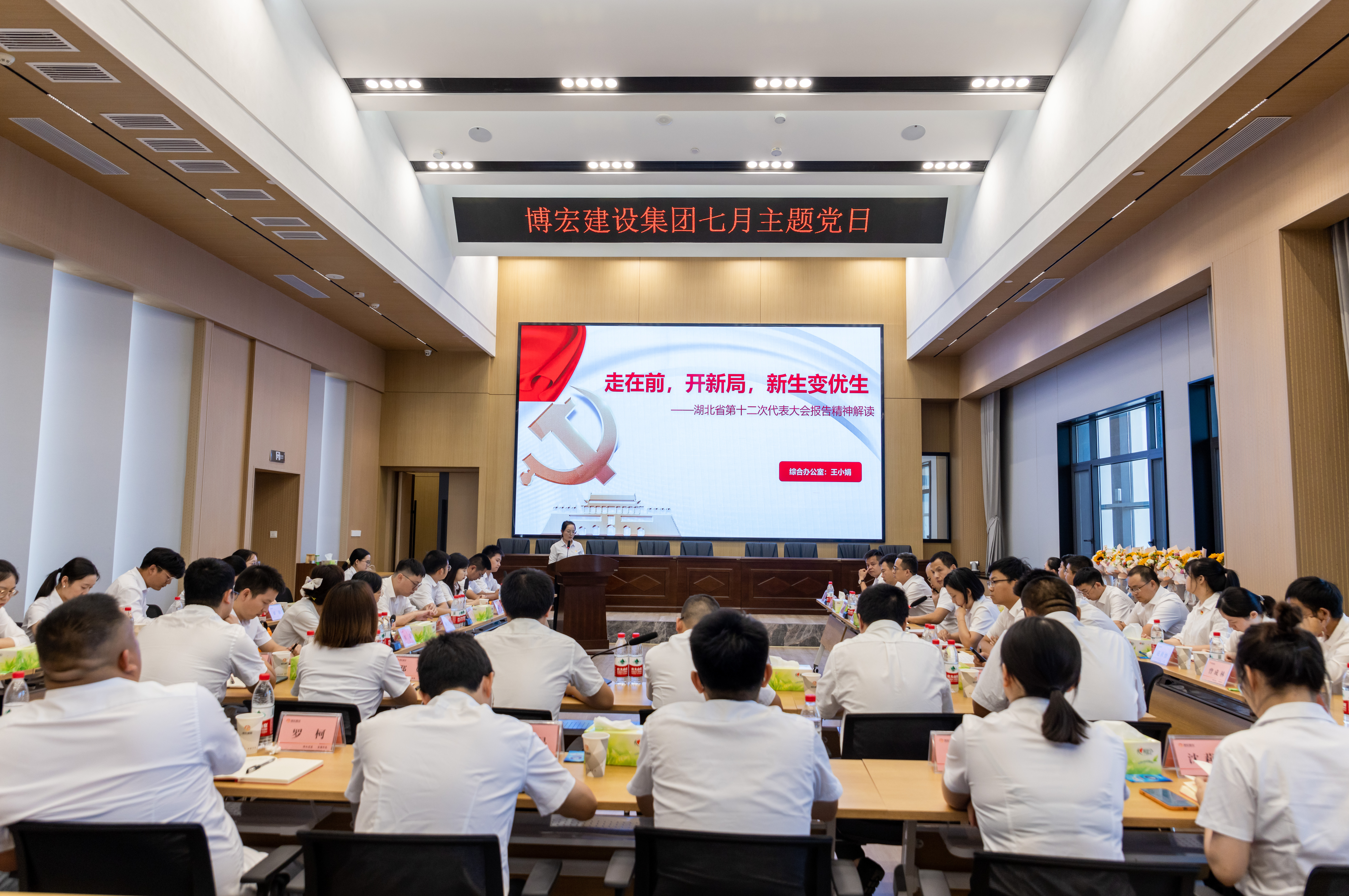 湖北省第十二次黨代會精神解讀。黨員王小娟以《“走在前,開新局”,新生變優生——湖北省第十二次代表大會報告精神解讀》為主題,從黨代會小知識、湖北省第十二次黨代會主要會議精神等方面進行仔細解讀。她說道,我們公司目前正處于高速發展期,作為青年黨員,工作中應該不斷堅定干事的信心與成事的決心,以永不懈怠的精神和一往無前的奮斗姿態,踔厲奮發、篤行不怠,為公司高質量發展貢獻力量。