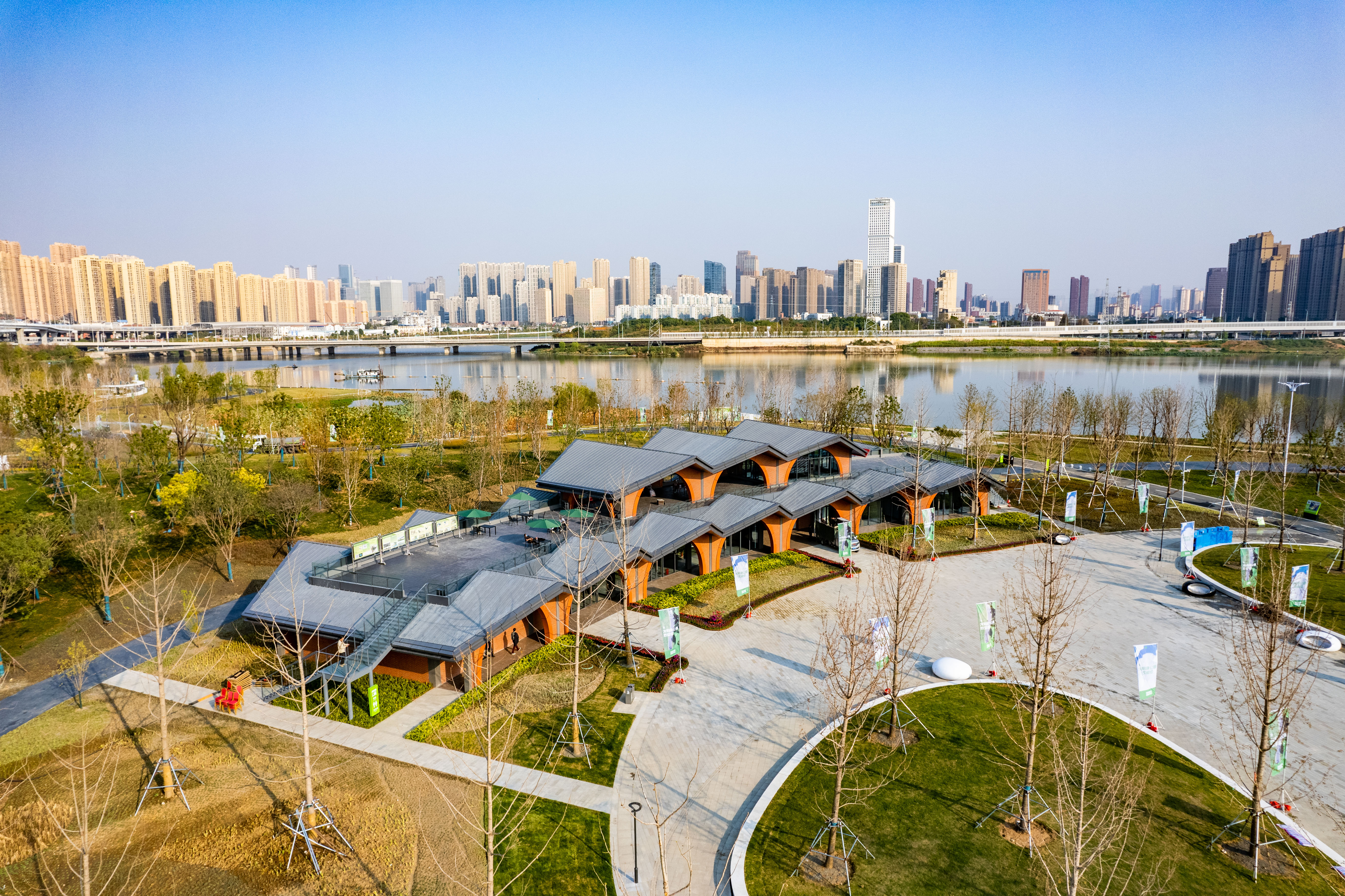 11月7日,龍陽半島園區在萬眾期待中閃亮登場。龍陽半島項目是整個龍陽湖公園“一環、三岸、五園、十八景”的一園。其中,園區內最引人注目的龍陽半島一級驛站由博宏建設集團所承建,驛站位于半島核心位置,建筑總體上呈扇形,面朝湖面展開,總建筑面積998.12㎡背面為背景林,前臨休憩廣場開敞草坪和一級景觀廊橋是全園的景觀核心。