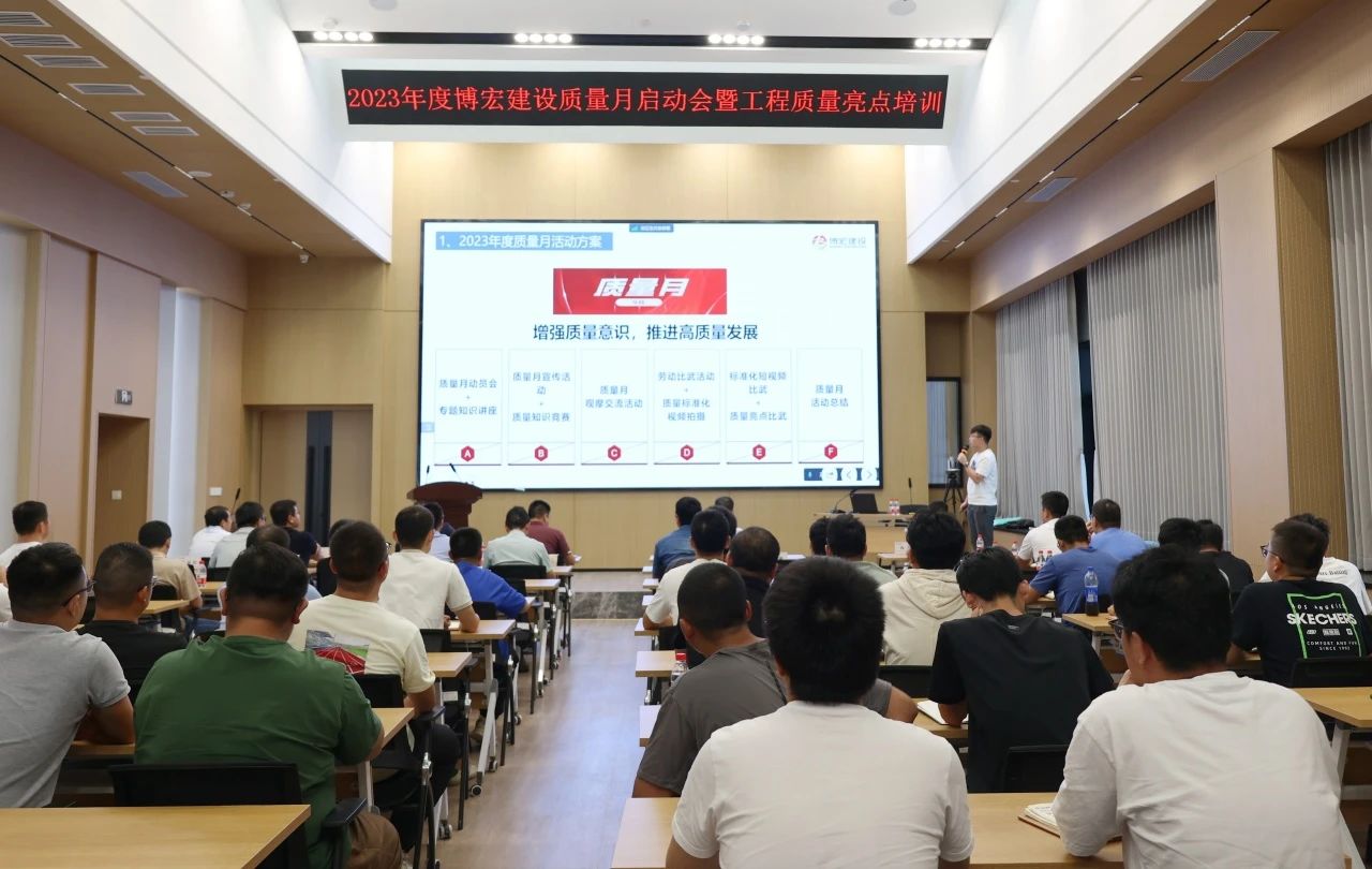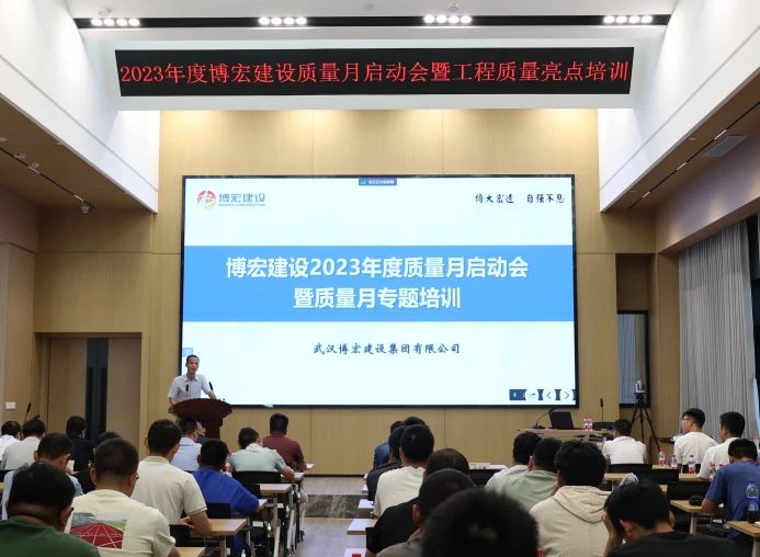 今年9月是第45個全國質(zhì)量月,為全面貫徹黨的二十大精神,落實《質(zhì)量強(qiáng)國建設(shè)綱要》部署,促進(jìn)質(zhì)量強(qiáng)國建設(shè)。9月15日下午,博宏建設(shè)舉辦以“增強(qiáng)質(zhì)量意識,推進(jìn)質(zhì)量發(fā)展”為主題的2023年質(zhì)量月啟動會暨工程質(zhì)量亮點培訓(xùn),黨委書記、董事長、總經(jīng)理鄒勇,總經(jīng)理助理李暉,質(zhì)量管理部部長、市內(nèi)外各項目部負(fù)責(zé)人及質(zhì)量崗位人員共計101人線上線下同步參與活動。