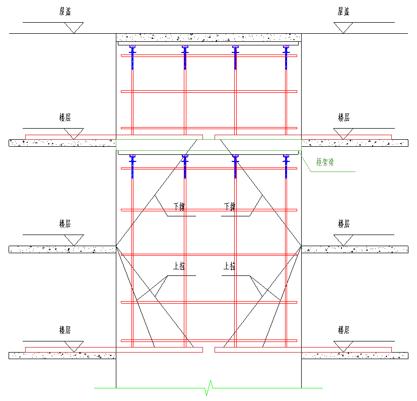 高空懸挑結構支撐體系立面示意圖