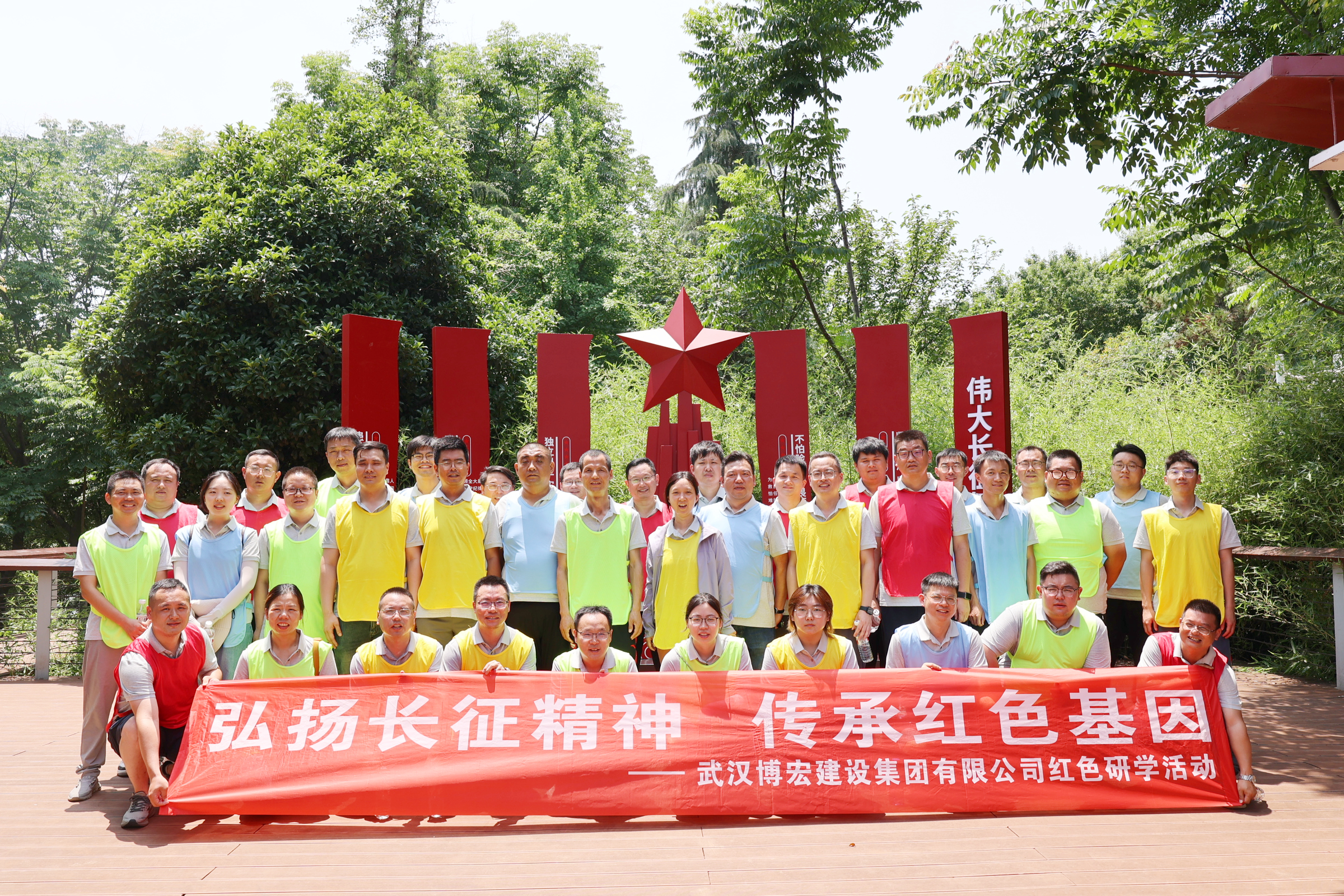 為追憶紅色足跡,感悟紅軍長征艱難歷程,培養職工干部的民族自豪感和愛國主義精神,傳承紅色基因。5月25日,博宏建設集團和武漢市漢陽控股集團有限公司聯合開展以“弘揚長征精神,傳承紅色基因”為主題的紅色研學活動,前往漢陽區墨水湖公園重走長征路紅色研學基地,重走紅色文化走廊,重溫那段革命先烈走過的光輝歲月。